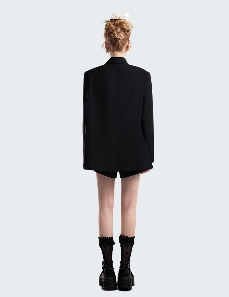 挺括肩部与利落翻领设计带来干练气场,而双排纽扣+翻盖口袋结构又赋予整体经典西装格调。内搭可休闲可性感,无论通勤还是聚会,都能完美驾驭,助你在人群中脱颖而出。