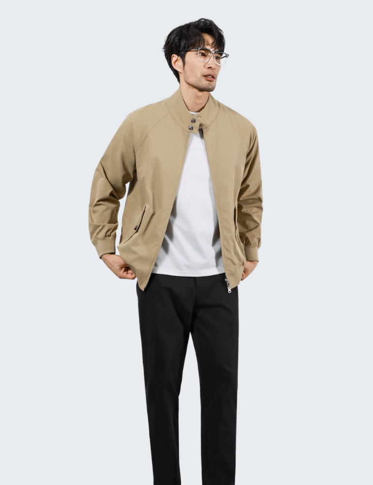 This lightweight jacket combines clean lines with casual comfort, featuring a high stand collar with snap buttons and elastic cuffs for a secure fit. Available in black, navy, and beige, it pairs effortlessly with both smart and laid-back outfits. Breathable and stylish, it’s perfect for spring and autumn days—whether you’re heading out for work or weekend adventures.