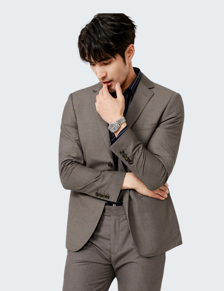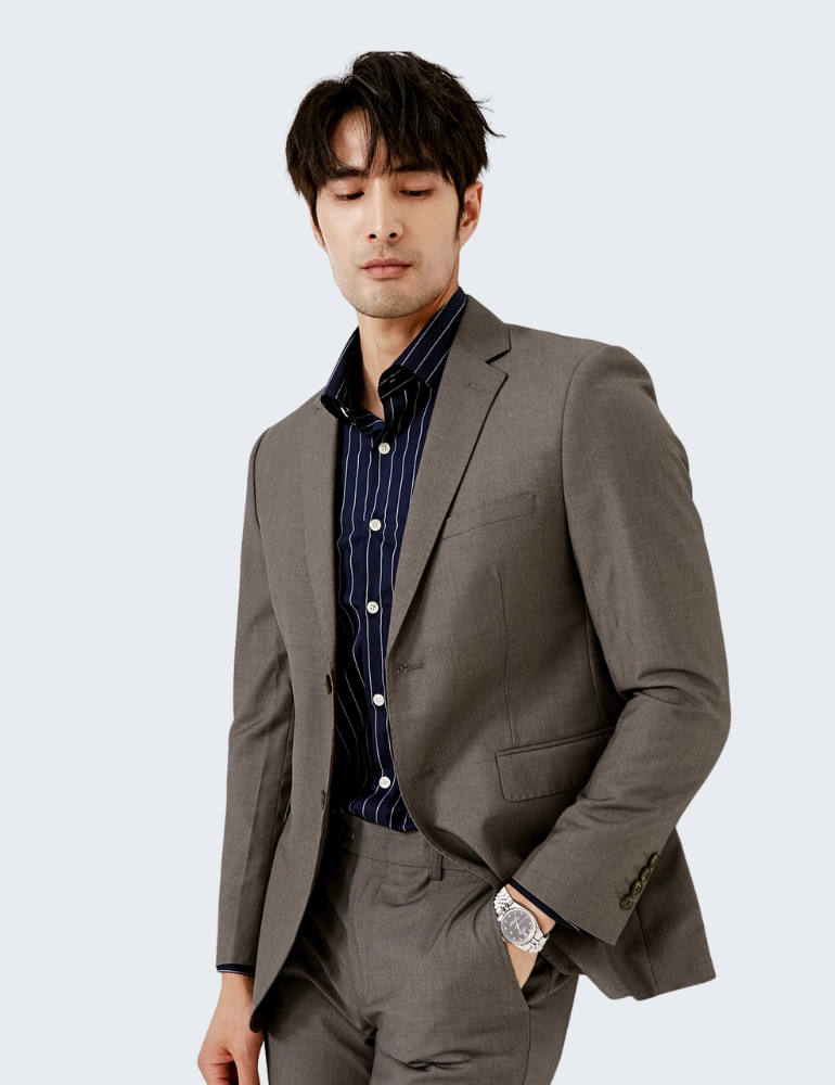 Breaking away from the rigid stereotype of formalwear, this casually refined blazer offers a crisp drape with anti-wrinkle texture, creating a balanced yet approachable look. Its warm, subtle finish features a uniform hue and gentle sheen, while the soft, springy fabric provides superior comfort compared to ordinary suits. The simple, single-breasted design easily transitions into everyday styling. Free of exaggerated details and cuts, it ensures a sharp, confident, and polished impression.