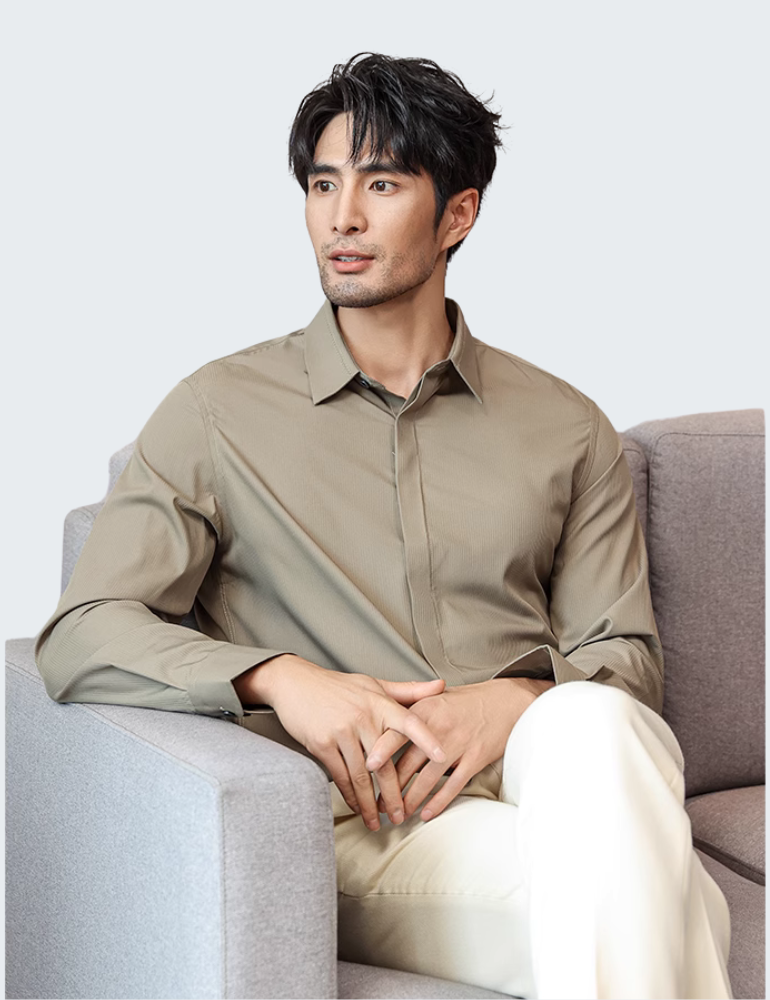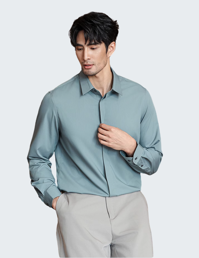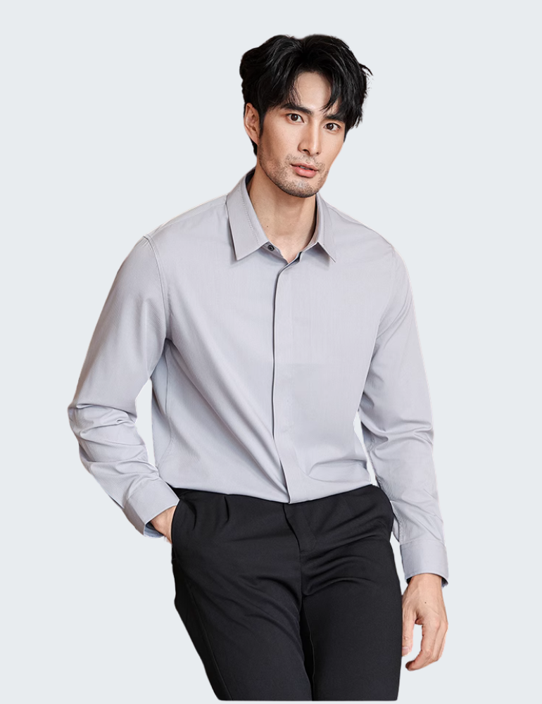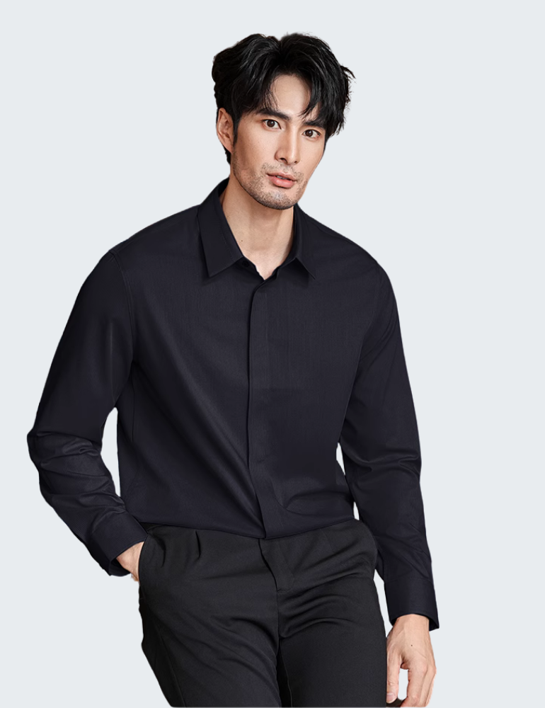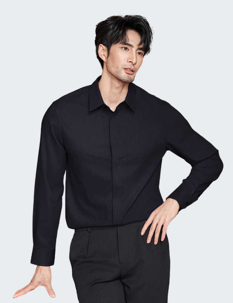 Crafted for versatility and modern elegance, this long-sleeve shirt features a sleek silhouette, structured collar, and hidden placket for a clean, polished look. Made from breathable, smooth fabric with a soft touch and natural stretch, it delivers comfort throughout the day. Ideal for both business and smart-casual settings, it pairs effortlessly with suits or trousers—an essential in every refined wardrobe.