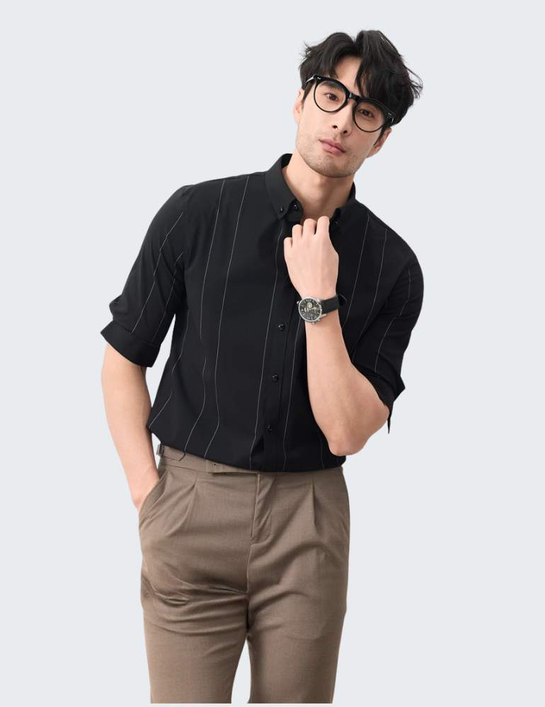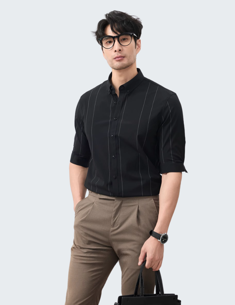 甄选聚酯纤维主面料,亲肤顺滑,具备良好弹性与抗皱性,不易变形、不粘毛,穿着更轻松。五分袖设计兼顾透气性与利落感,搭配扣领设计,整洁挺括,尽显商务质感。