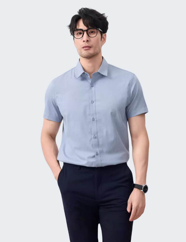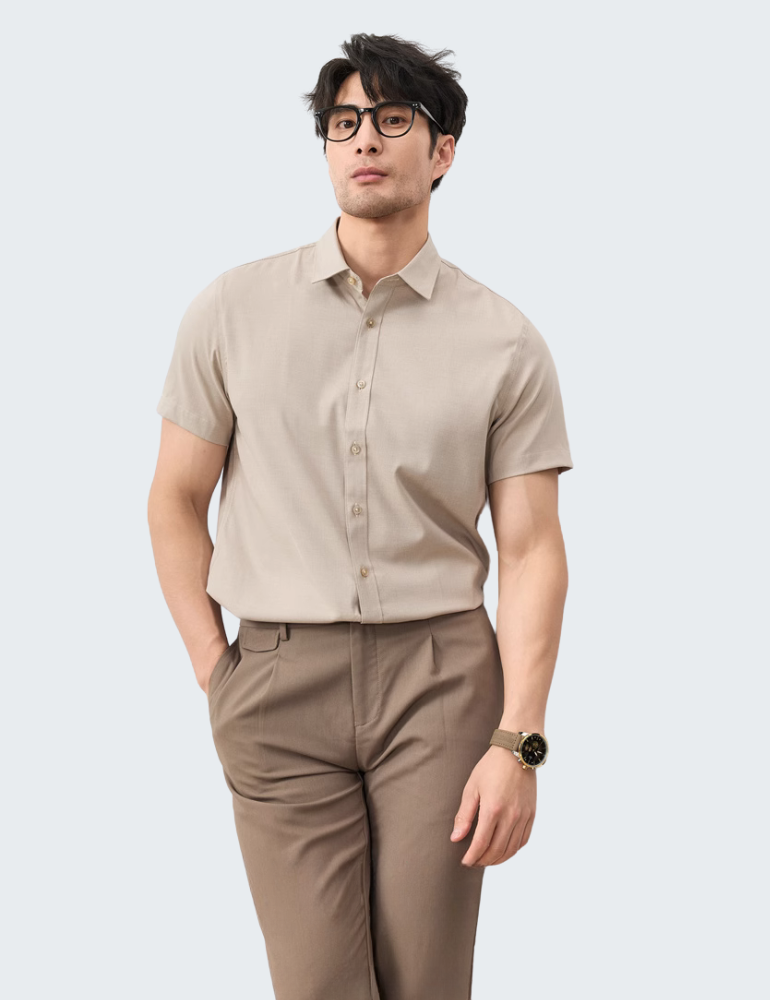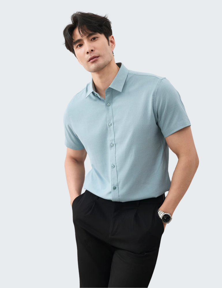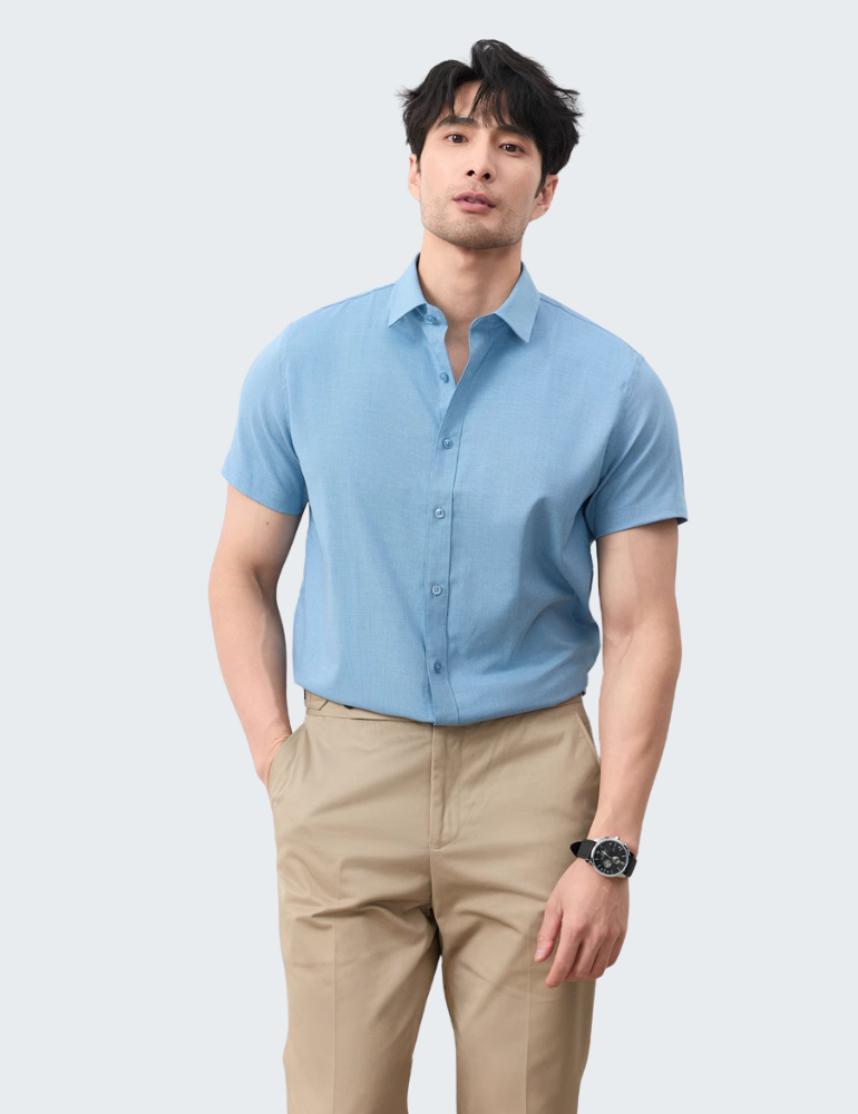 这款衬衫采用素有“纤维皇后”之称的竹纤维,