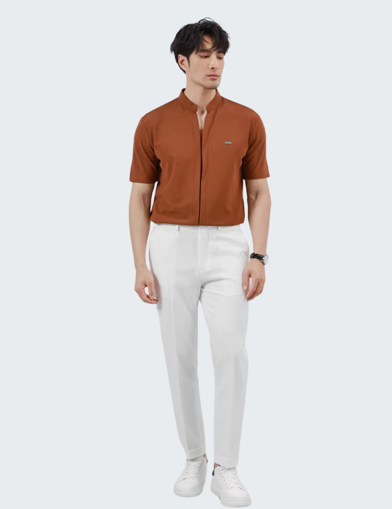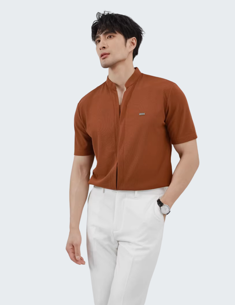- 立领设计:抛弃传统翻领,转而采用立体挺括的立领造型,清爽利落不拘束,更显颈部线条。
