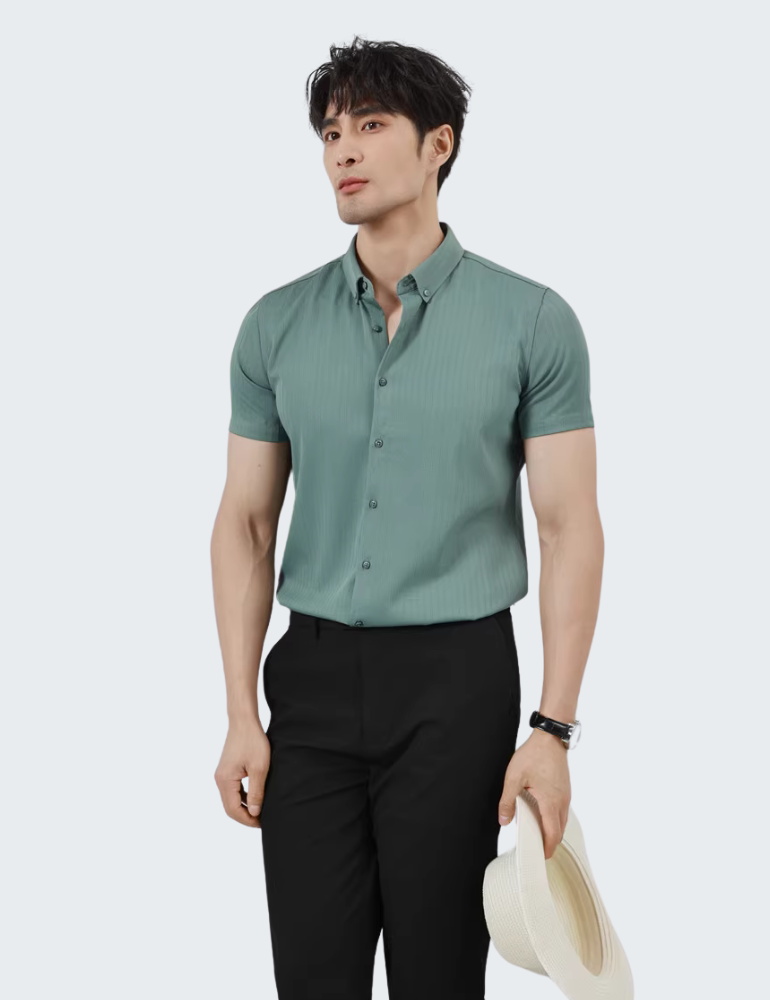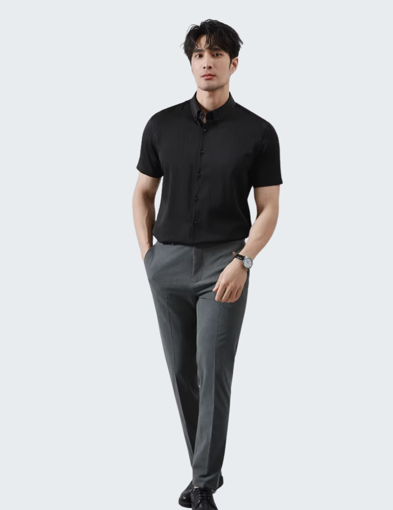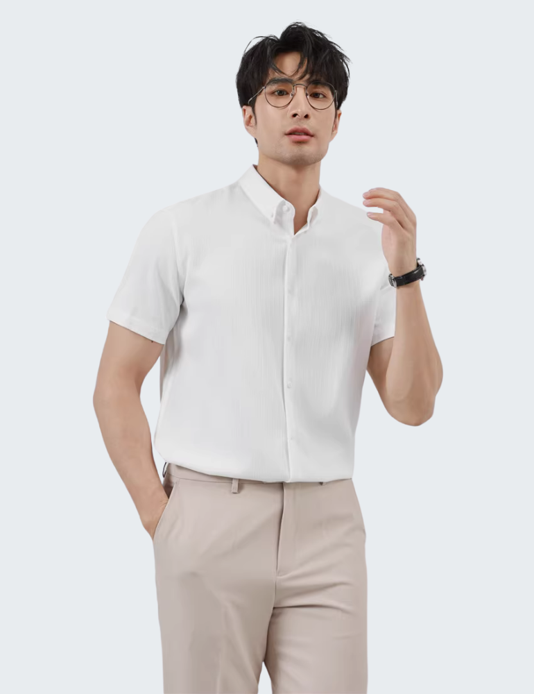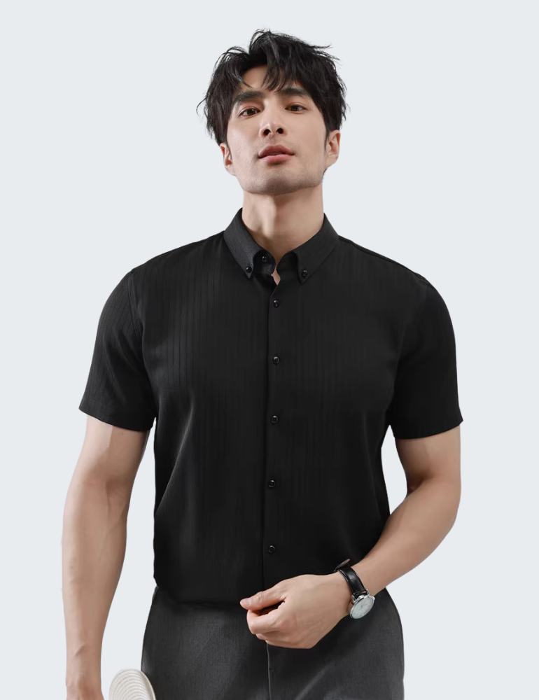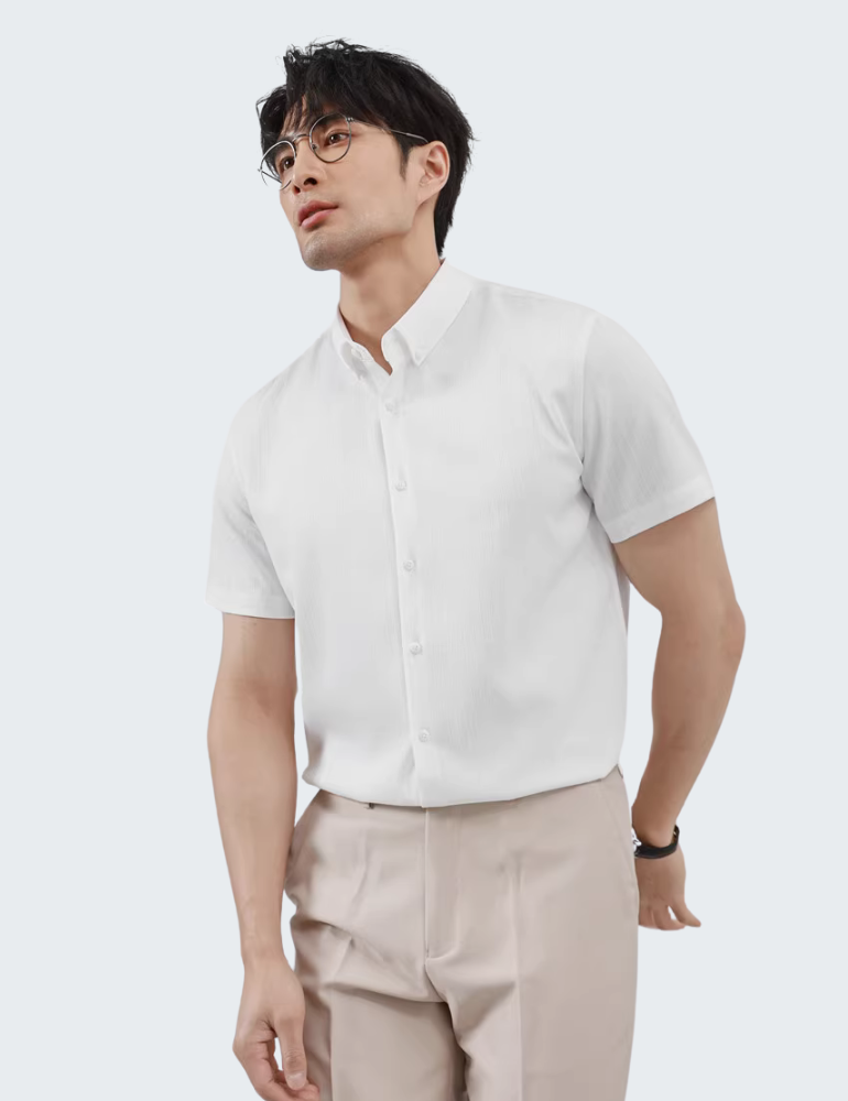 本款衬衫采用轻薄高密面料打造,精选高品质聚酯纤维与弹性纤维混纺织造,兼具挺括与舒适,适合日常通勤与夏日穿着。