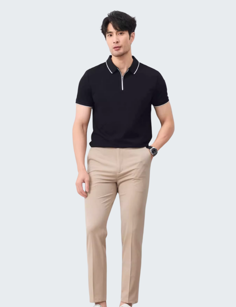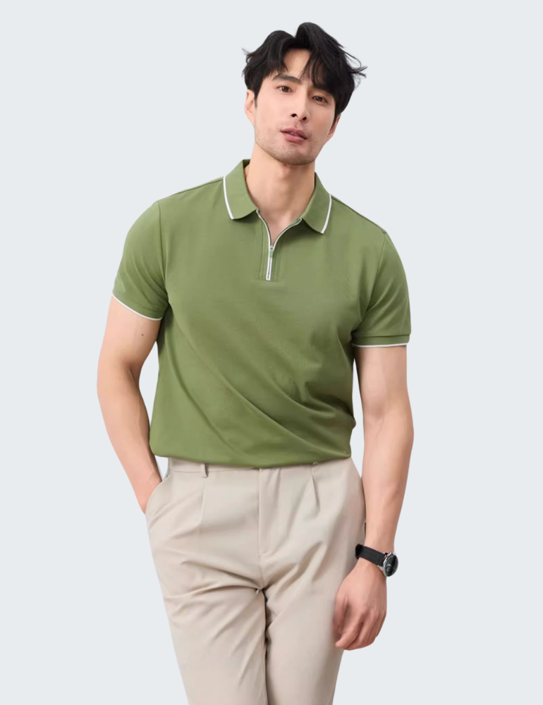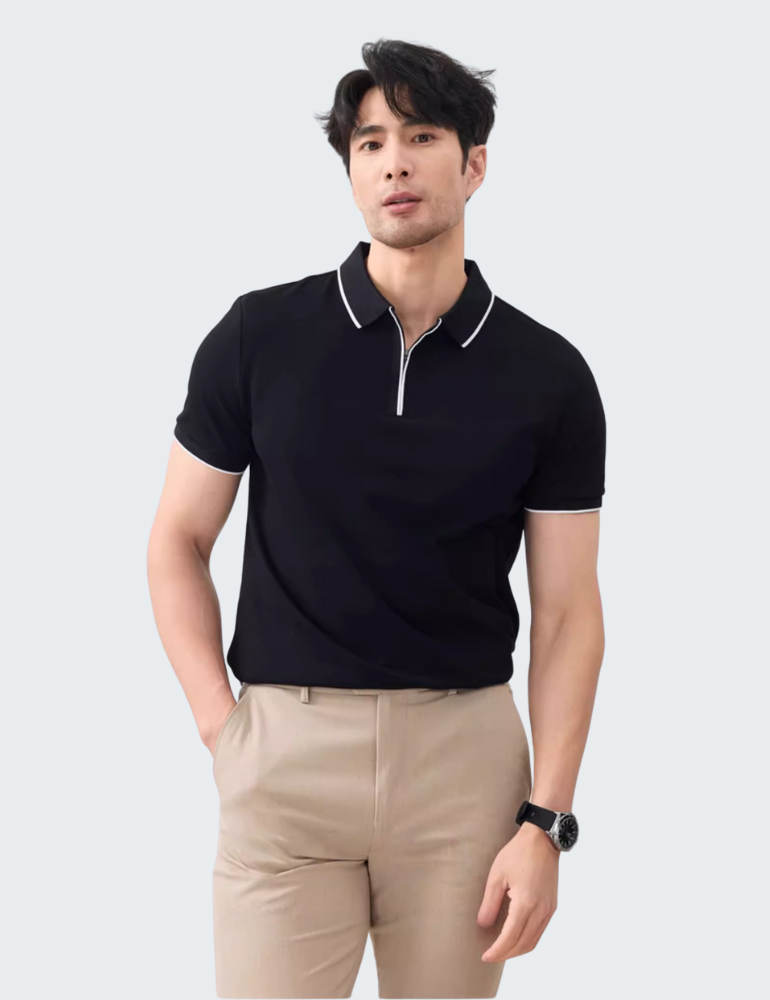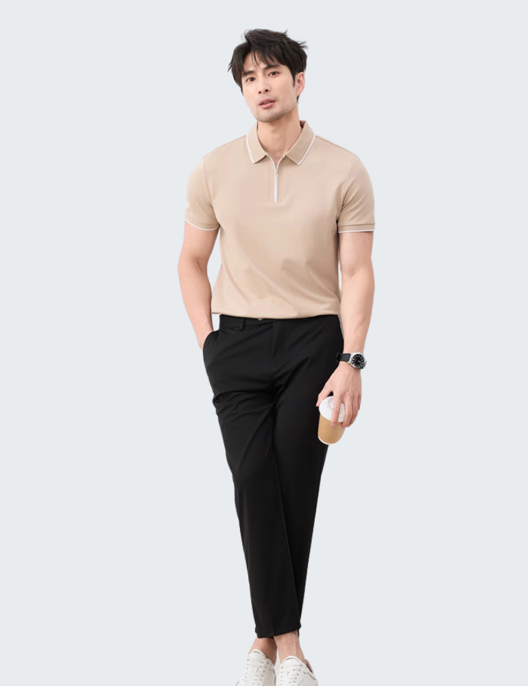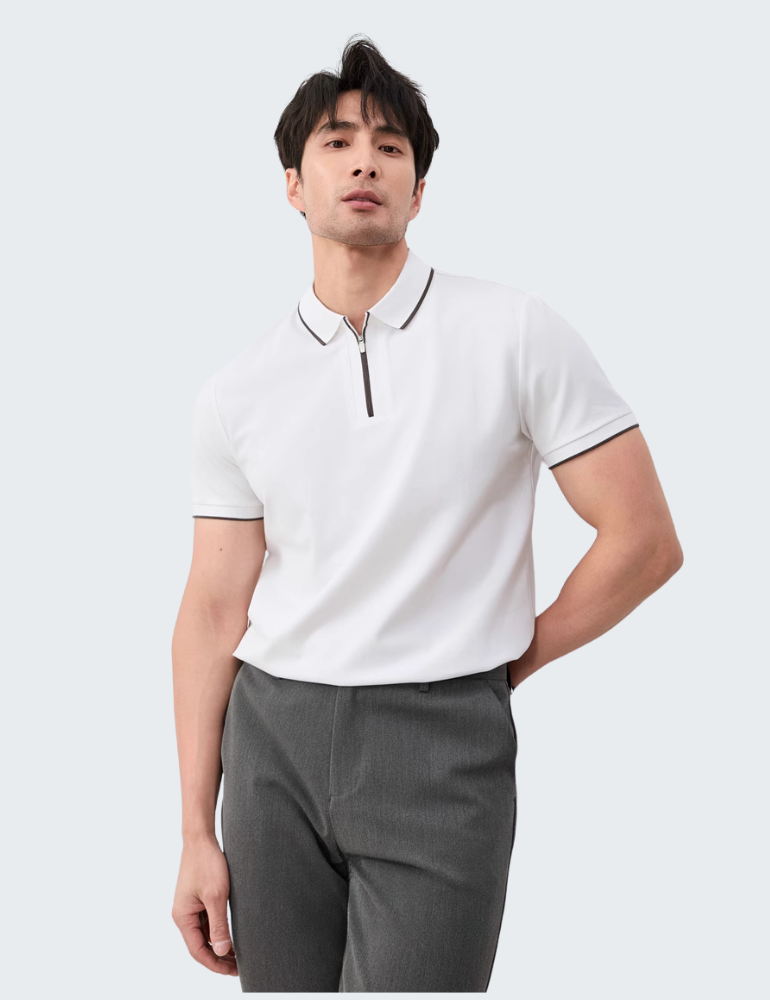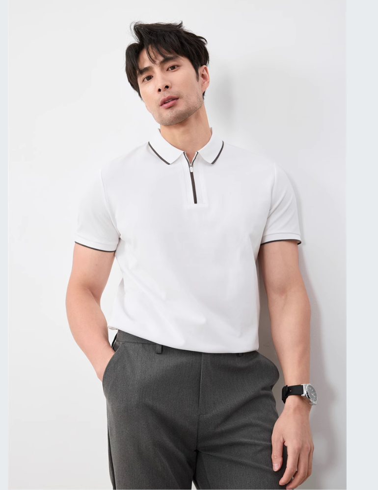 - 极简拉链领口:颠覆传统纽扣Polo设计,轻松开合,细节更具时尚态度;