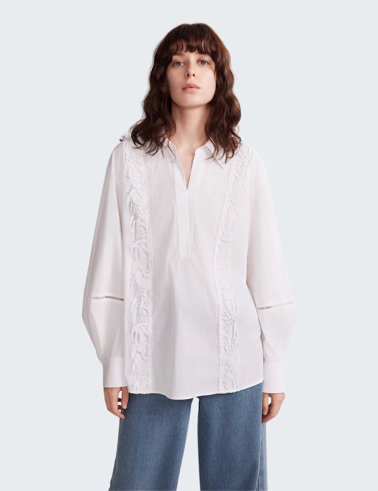 这款白色刺绣上衣以简约与精致并存的设计,轻松演绎时尚格调。