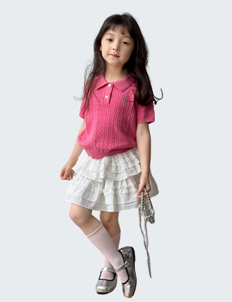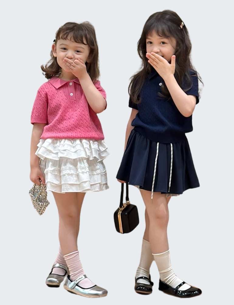 - 甜美Polo领设计:Polo翻领造型搭配双排纽扣,经典中增添几分灵动俏皮,既有学院风格也不失日常活泼。